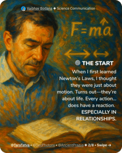 When I first stepped into a physics class, I expected numbers and laws—not lessons on life. But slowly, Newton’s laws became more than motion; they mirrored how we react in relationships. “Every action has an equal and opposite reaction”—isn’t that just like how people respond to kindness, anger, or trust? According to NCERT data, over 1.2 crore Indian students learn physics in Class 11-12 each year, but few see how deeply it connects to their lives. What started as textbook theory became a philosophy. As a teacher and science communicator, I started noticing how motion, force, and energy applied to emotions, struggles, and choices. This article explores how physics became more than a subject—it became my way of thinking, my second language. If you’ve ever wondered how science could explain not just the ‘what’ but the ‘why’ of life, keep reading. You might never look at a falling apple the same way again.