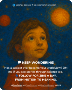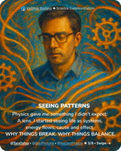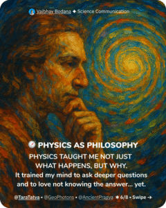 If physics can teach me to see pain, beauty, and balance—what can your favorite subject teach you? Maybe history makes you notice patterns in human behavior. Maybe biology helps you understand growth and change. The point is: learning doesn’t stop at exams. It keeps shaping how we see life, long after school ends. In the words of Carl Sagan, “Somewhere, something incredible is waiting to be known.” Let curiosity drive you. Think of the world as your lab, your library, your lens. And if physics ever speaks to you like it did to me—don’t ignore it. DM me if your favorite subject changed how you think. Let’s start a conversation.