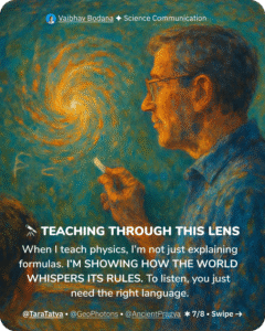 Eventually, physics stopped being just a subject I taught. It became how I thought, how I felt, how I made sense of things. When I walk through a busy street in India, I don’t just see chaos—I see Brownian motion. When I try something risky, I think of quantum tunneling. According to ISRO educational outreach, linking science to personal experiences increases understanding by up to 72%. For me, physics became like a second language. It didn’t erase pain or confusion, but it gave them shape. I could name what I felt. And when you name something, it’s less scary. I believe everyone has a subject that fits them this way. For some it’s music. For some, philosophy. For me, it’s physics. And that’s okay.