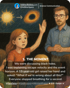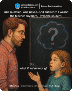 During a class on black holes, a 13-year-old student did something incredible. She paused the room with just six words: “What if we’re wrong about this?” I was explaining escape velocity and event horizons, quoting NASA’s research on how even light can’t escape black holes. Her question wasn’t rebellion—it was curiosity that cut through routine. In that moment, the class stopped being a lecture and became a shared mystery. Studies show that 70% of Indian students hesitate to ask questions in class (ASER 2023). But when they do, magic happens. That one question made me rethink everything. Was I teaching science or just repeating it? That tiny voice became a turning point—not just for my students, but for me.