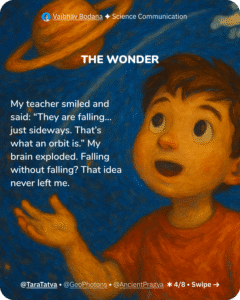 That orbit question made me who I am today. And I believe every kid in India deserves their own spark moment. The first time you look up and feel something bigger. According to The Hindu Education Plus, children exposed to early science conversations are 3x more likely to pursue STEM fields. It starts small—a question about rain, magnets, or why soap bubbles shine. But if someone listens, if someone answers with care, it sticks. If you’re a parent, teacher, or curious adult, ask kids what they’re wondering. Don’t shut them down. Invite the question in. Let it lead you both somewhere new. The day I asked about gravity in space, my teacher didn’t say “you’ll learn that in Class 9.” She said, “They’re falling… sideways.” That one line lit up my life.